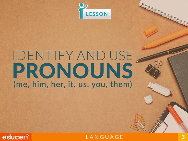 Identify and use pronouns (me, him, her, it, us, you, them)