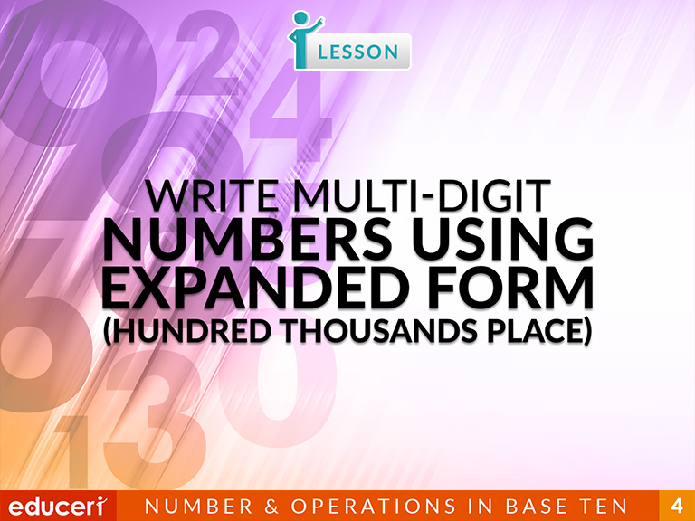 4.NBT.2 Read and write multi-digit whole numbers using base-ten numerals, number names, and expanded form. Compare two multi-digit numbers based on meanings of the digits in each place, using >, =, and < symbols to record the results of comparisons.
