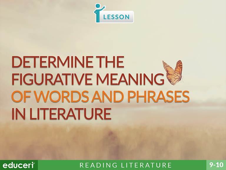 RL.9-10.4 Determine the meaning of words and phrases as they are used in the text, including figurative and connotative meanings; analyze the cumulative impact of specific word choices on meaning and tone (e.g., how the language evokes a sense of time and place; how it sets a formal or informal tone).