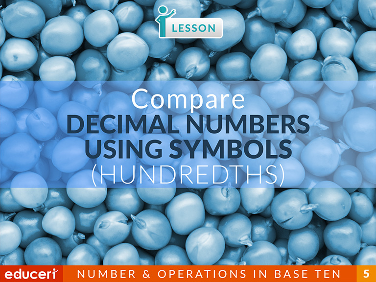 4.NF.7 Compare two decimals to hundredths by reasoning about their size. Recognize that comparisons are valid only when the two decimals refer to the same whole. Record the results of comparisons with the symbols >, =, or <, and justify the conclusions, e.g., by using a visual model.