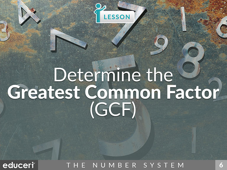 6.NS.4 Find the greatest common factor of two whole numbers less than or equal to 100 and the least common multiple of two whole numbers less than or equal to 12. Use the distributive property to express a sum of two whole numbers 1-100 with a common factor as a multiple of a sum of two whole numbers with no common factor. For example, express 36 + 8 as 4 (9 + 2).