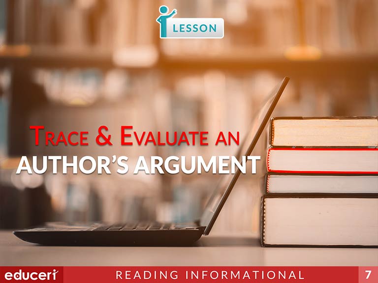 This reading informational text lesson covers how to trace and evaluate an author’s argument in informational text. The lesson includes research-based strategies and strategic questions that prepare students for assessments. In this lesson, students identify the author’s claims and determine if each claim is supported by relevant evidence. A final judgment is made on whether the argument has sound reasoning.