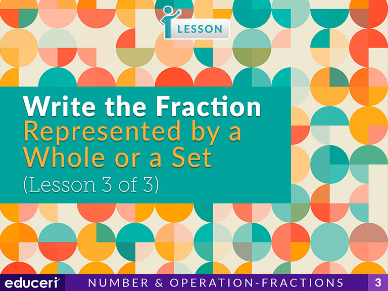 Write a fraction represented by a whole or a set