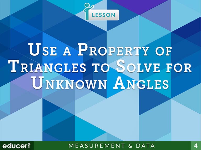 (D) Use informal arguments to establish facts about the angle sum and exterior angle of triangles, the angles created when parallel lines are cut by a transversal, and the angle-angle criterion for similarity of triangles.