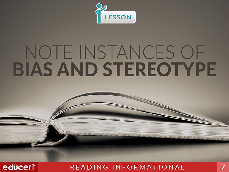 This reading comprehension lesson focuses on noting instances of bias and stereotype. The lesson includes research-based strategies and strategic questions that prepare students for assessments. In this lesson, students read a passage to identify the author's assertion. Then, they answer questions about examples of bias or stereotyping found within the text. In addition to the lesson, there are four pages of Independent Practice and review with questions modeled after current adaptive testing items.