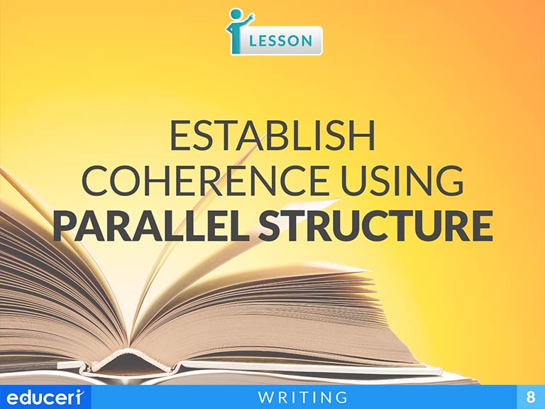 This writing conventions lesson focuses on establishing coherence through the parallel structure. The lesson includes research-based strategies and strategic questions that prepare students for assessments. In this lesson, students read the sentence and identify parts of it that are not parallel, based on three given rules of parallel structure. Then, they rewrite the sentence using parallel structure and read it aloud. In addition to the lesson, there are eight pages of Independent Practice and review. These are modeled on current adaptive testing methods.