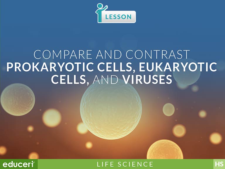 Compare prokaryotic cells, eukaryotic cells, and viruses