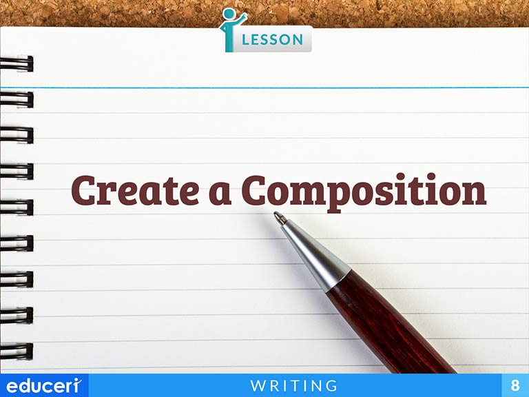 This writing strategies lesson focuses on creating a composition. The lesson includes research-based strategies and strategic questions that prepare students for assessments. In this lesson, students choose a topic and write their controlling impression (their opinion). Then, they research to find three broad reasons for that support their impression. Then, they write the thesis statement with a controlling impression, followed by elaboration on the reasons in the body, and a summary or final appeal for the conclusion. In addition to the lesson, there are three more graphic organizers for planning and writing the composition as well as a page of possible topics.