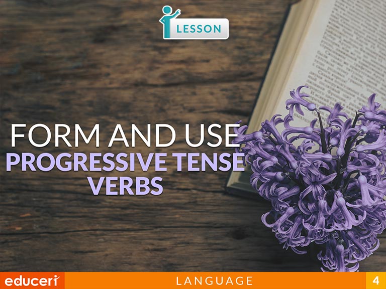 This language lesson covers how to form and use progressive tense verbs. The lesson includes research-based strategies and strategic questions that prepare students for assessments. In this lesson, students read a pair of sentences, identify the verbs, and then identify which sentence contains the progressive tense verb.