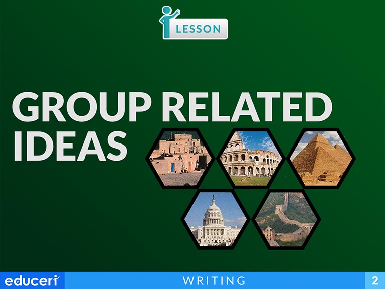 This writing strategies lesson focuses on grouping related ideas. The lesson includes research-based strategies and strategic questions that prepare students for assessments. In this lesson, students use the central idea to correctly group related ideas. This lesson uses the grouping of ideas to write short paragraphs. In addition to the lesson, there are four pages of Independent Practice and review with questions modeled after current adaptive testing items.