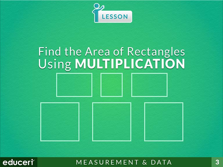 This measurement and data lesson covers how to find the area of rectangles using multiplication. The lesson includes research-based strategies and strategic questions that prepare students for assessments. In this lesson, students will identify the side lengths or a rectangle, and then multiply to find the area and interpret the result.