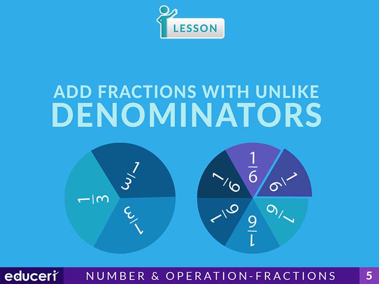 This number and operations -- fractions lesson teaches students how to add fractions with like denominators. The lesson includes research-based strategies and strategic questions that prepare students for assessments. In this lesson, students will add fractions with like denominators. This lesson includes a variety of real-world examples. This lesson also covers reducing fractions.